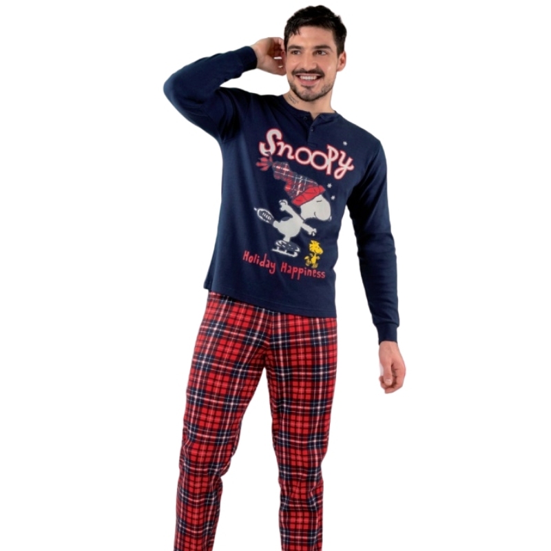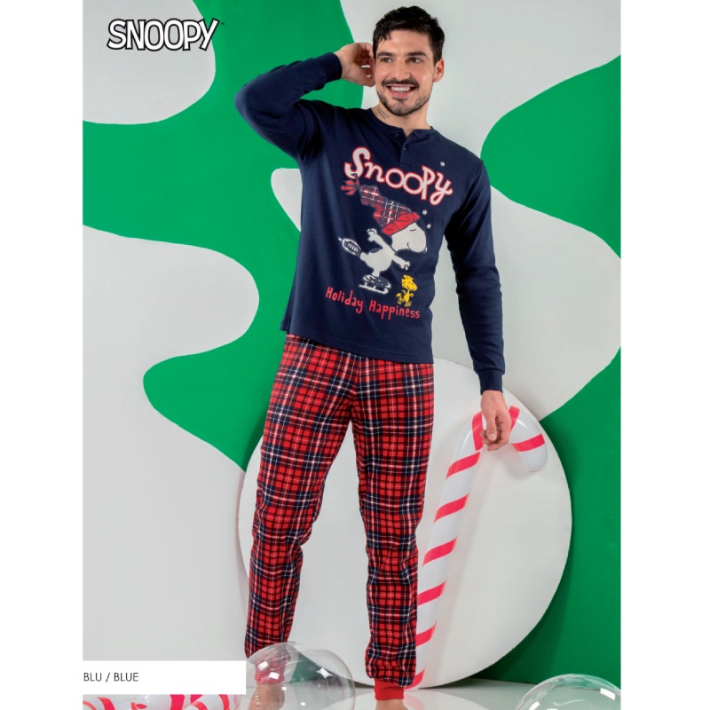 Snoopy PNM8105 Ανδρική Πυζάμα Blu Blue Μπλε. 100% COTTON.