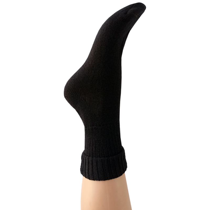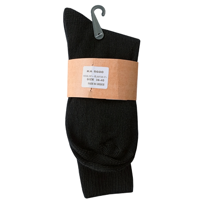 bs 5/5600 Ισοθερμική Λεπτή Κάλτσα Μαύρη 95% Μαλλί 5% Ελαστάν ( ΤΟ ΝΗΜΑ ΕΙΝΑΙ 100% ΜΑΛΛΙ - MERINOS ). Έχει απαλό λάστιχο. Είναι ισοθερμικές κάλτσες από μαλλί Merinos. Το Merinos είναι μια ράτσα προβάτων, που χαρακτηρίζεται από πολύ λεπτό και μαλακό μαλλί. Το μαλλί Μερινός είναι ένα καλά διαπνέον υλικό, το χαρακτηριστικό αυτό, του δίνει τη δυνατότητα να εξατμίζει γρήγορα την υγρασία από το σώμα μας. Επίσης δημιουργεί στο σώμα μικροκλίμα, το οποίο εμποδίζει την ταχεία διείσδυση των εξωτερικών κλιματικών συνθηκών στο δέρμα όπως το κρύο ή την ζέστη. Το μαλλί απορροφάει την υγρασία από το σώμα μας, μέχρι και 30% του βάρους του, χωρίς να αισθανόμαστε υγρασία ή κρύο όταν το φοράμε και ενώ έχει απορροφήσει πλήρως την υγρασία, παραμένει στεγνό στην αφή, χωρίς να χάνει τίποτα από την θερμορυθμιστική του ικανότητα. Και τέλος είναι Αντιβακτηριδιακό, Αντι-αλλεργικό, και μας παρέχει προστασία από την UV ακτινοβολία.