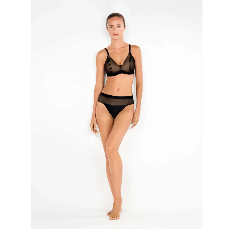 Σουτιέν χωρίς μπανέλα που προσφέρει ακριβή στήριξη. Οι ρυθμιζόμενες τιράντες και η επιλογή σταυρωτής τοποθέτησης στο πίσω μέρος επιτρέπουν μια ευέλικτη και διακριτική εφαρμογή κάτω από οποιοδήποτε ένδυμα. Ο σχεδιασμός του λειαίνει τις ανωμαλίες στη μασχάλη. Τα θερμοκολλημένα φινιρίσματα εγγυώνται ένα άψογο φινίρισμα που δεν αφήνει σημάδια. Ιδανικό για όσους αναζητούν μια καθορισμένη σιλουέτα και αόρατη άνεση.