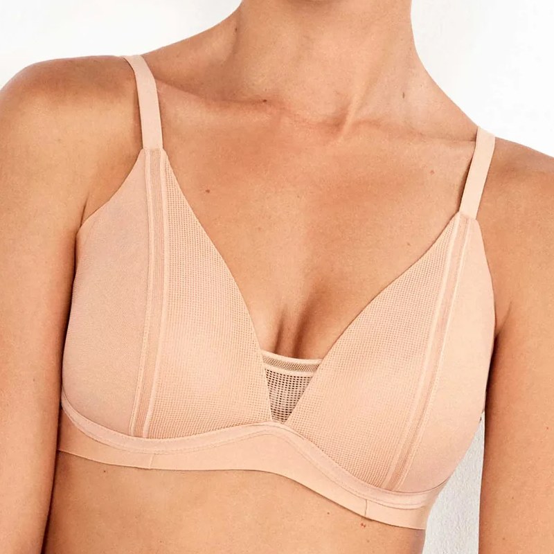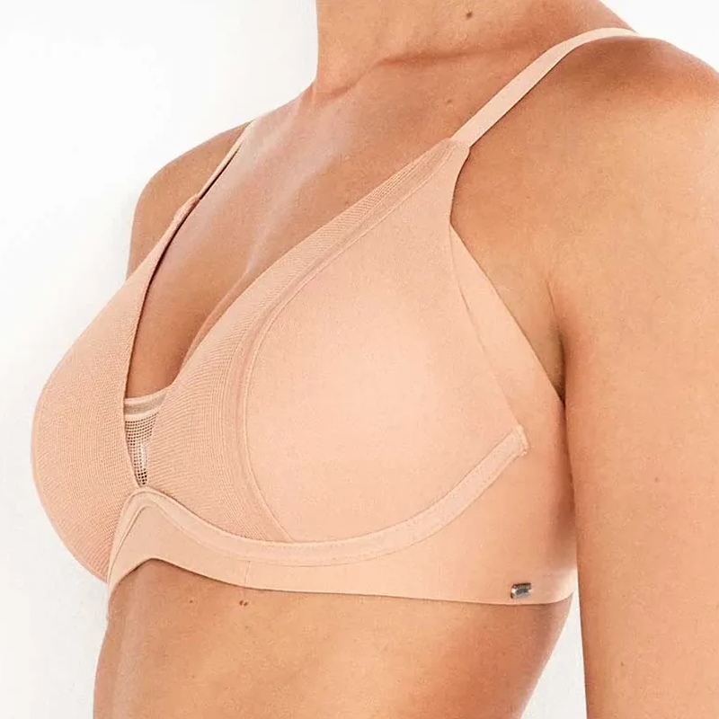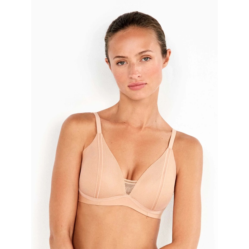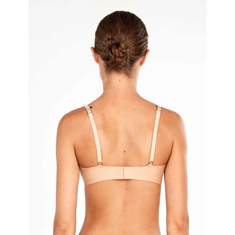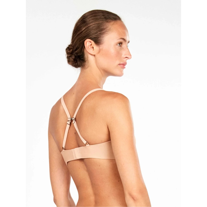 Σουτιέν χωρίς μπανέλα που προσφέρει ακριβή στήριξη. Οι ρυθμιζόμενες τιράντες και η επιλογή σταυρωτής τοποθέτησης στο πίσω μέρος επιτρέπουν μια ευέλικτη και διακριτική εφαρμογή κάτω από οποιοδήποτε ένδυμα. Ο σχεδιασμός του λειαίνει τις ανωμαλίες στη μασχάλη. Τα θερμοκολλημένα φινιρίσματα εγγυώνται ένα άψογο φινίρισμα που δεν αφήνει σημάδια. Ιδανικό για όσους αναζητούν μια καθορισμένη σιλουέτα και αόρατη άνεση.