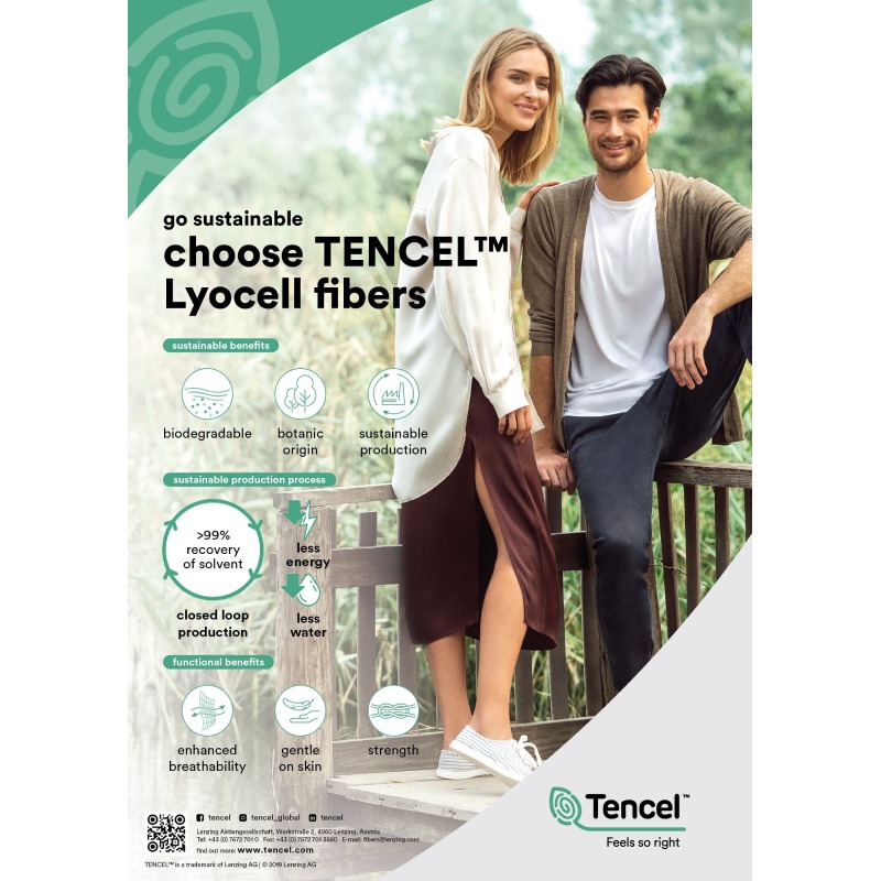 Το Tencel (Lyocell) είναι μια οικολογική ίνα από φυσικό πολτό ξύλου, γνωστή για την απαλότητά της, την αντιβακτηριδιακή της δράση και την περιβαλλοντική της φιλικότητα. Συνδυασμένο με βαμβάκι, δημιουργεί ένα ύφασμα που θα λατρέψεις στην καθημερινότητά σου.