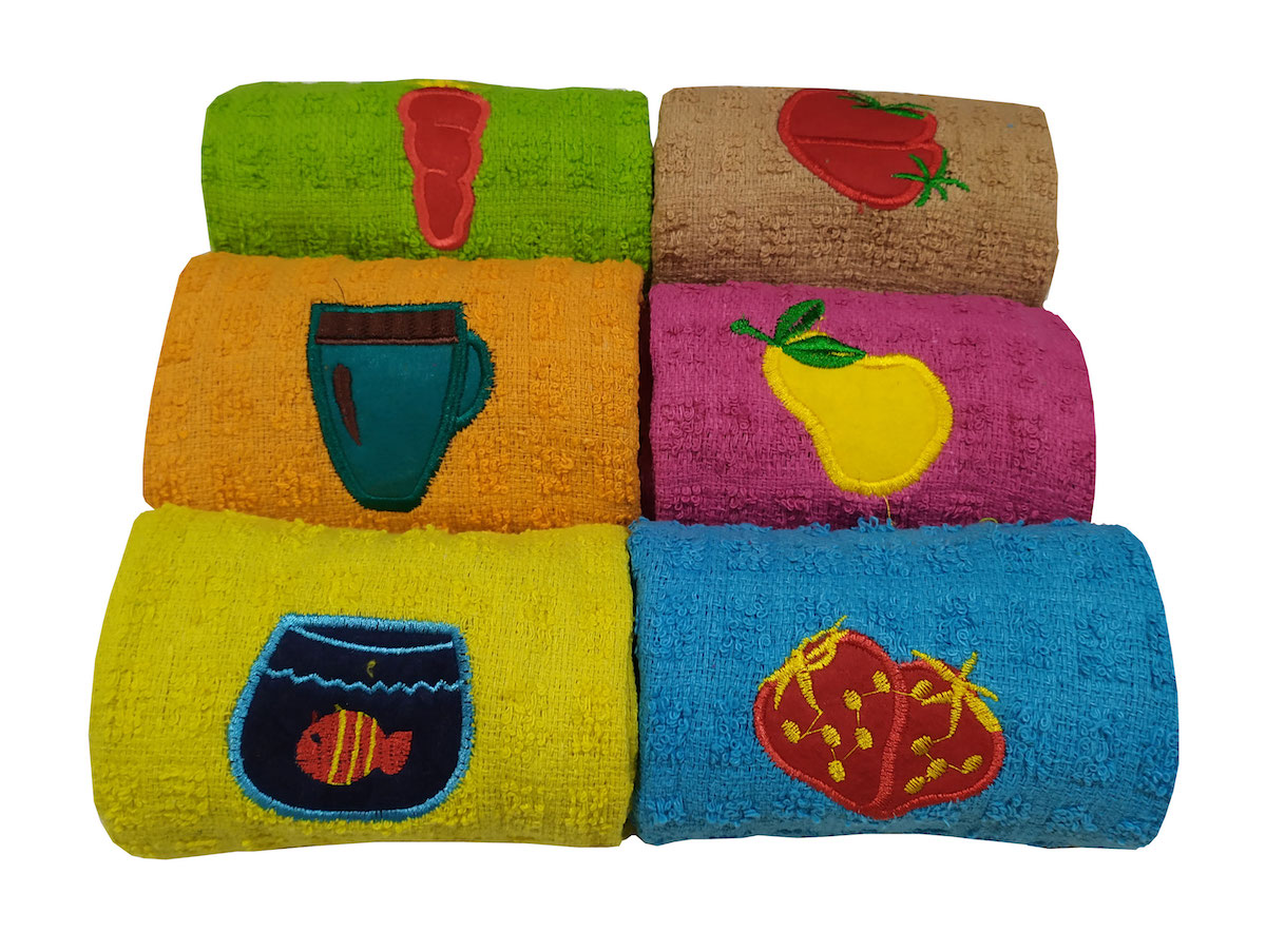 6 Ποτηρόπανα πετστέ με κέντημα 100% Cotton 40x60 σε χρώμα Ανοιχτό Πράσινο, Καφέ, Πορτοκάλι, Φούξια, Κίτρινο & Τυρκουάζ
