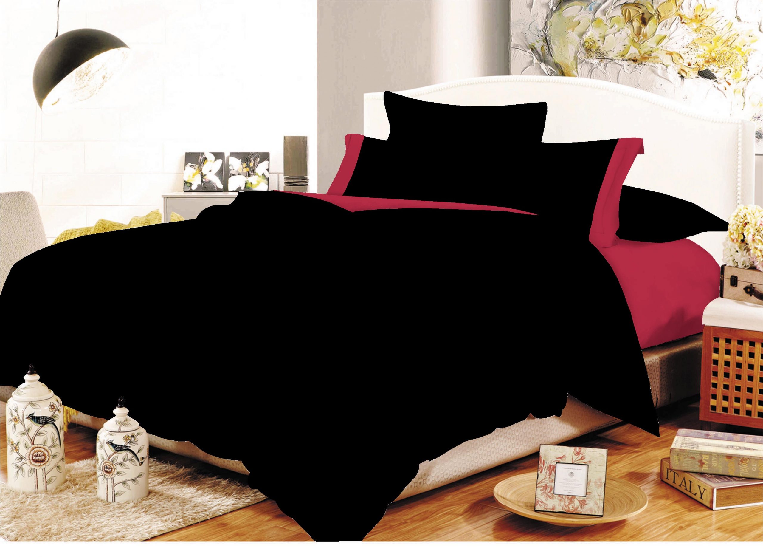 Σετ Σεντόνια ΚΟΜΒΟΣ Cotton Line Black - Red Μονόχρωμα με Φάσα Μονά 160x240